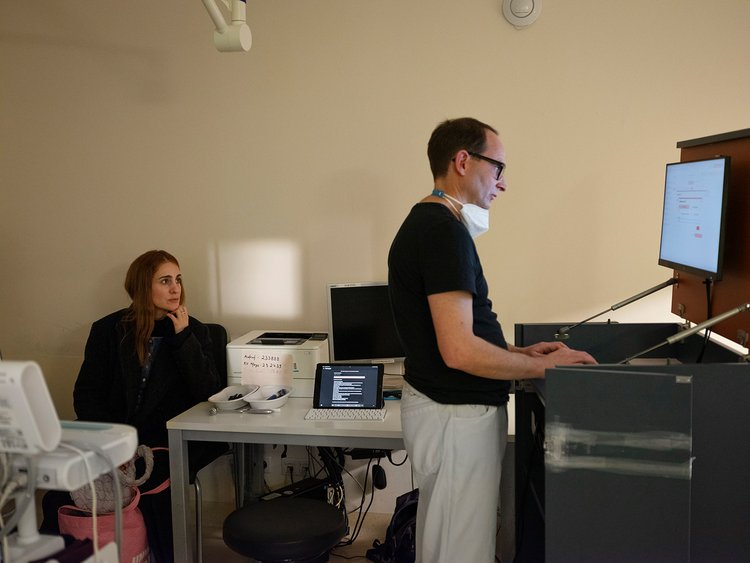 Der Nachmittag rauscht in diesem Rhythmus dahin, die Zeit vergeht wie im Flug. Um 18:30 Uhr warten immer noch zehn Patientinnen und Patienten. Jetzt ist es Zeit für meinen traditionellen Witz: Ich gehe zu Rico, teile ihm mit, dass ich jetzt über den Keller abhauen werde, und wünsche ihm Glück bei der Bewältigung der noch anstehenden Aufgaben. Zu Beginn meiner Arbeit im Notdienst habe ich versucht, die Zahl der Wartenden möglichst auf null abzuarbeiten. Es ist aber wie im Märchen vom Hasen und dem Igel: Je mehr man sich bemüht, desto mehr Patientinnen und Patienten werden es.