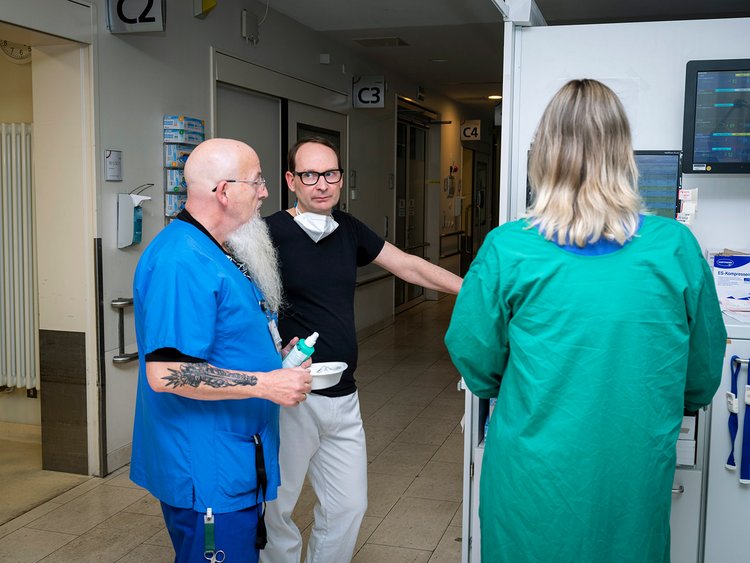 Ich betrete die Rettungsstelle durch den Eingang für Rettungsdienste und melde mich beim Pflegepersonal der Triage zum Dienstantritt. Man freut sich über mein Erscheinen. Einen Teil des Personals kenne ich noch aus alten Zeiten, den anderen inzwischen auch. Zunächst schaue ich bang auf die Monitore, die den Wartebereich der Rettungsstelle zeigen. Die Schlange derjenigen, die sich anmelden wollen, kringelt sich noch nicht, und auch auf dem kalten Steinboden kauert noch niemand. Ich atme auf – höchstens 20 Patientinnen und Patienten für mich.